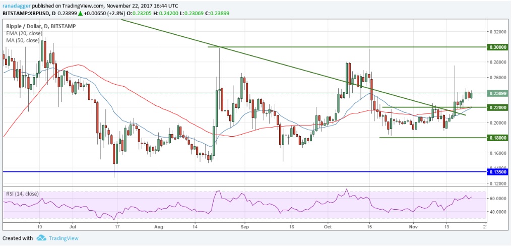 Tuy nhiên, nếu Ripple có thể tăng lên mức 0.245 USD trong vòng một hoặc hai ngày tới thì rất có thể nó sẽ có được đà tăng trưởng lên mức 0.30 USD, đây là mức tốt nhất để giữ 50% lợi nhuận.
