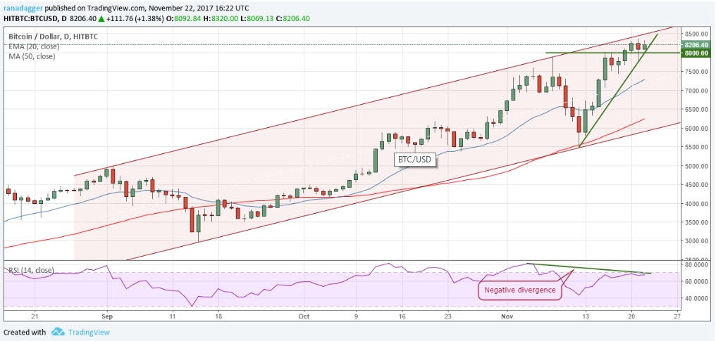 Trong 2 ngày qua, Bitcoin đã vượt được ngưỡng 8.000 USD, điều này cho thấy mức mua vào vẫn còn đang khá cao. Tuy nhiên, đà tăng trưởng sẽ giảm nếu Bitcoin xuống mức 7.700 USD.