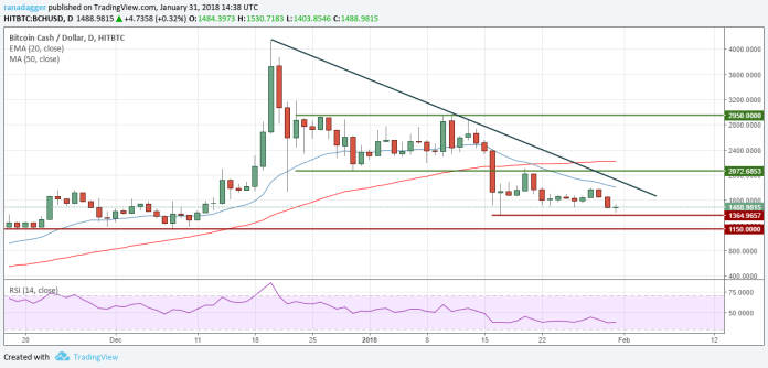 Giá Bitcoin Cash giảm khoảng 64% từ khi lập đỉnh ở mức 4.139 USD vào ngày 20 tháng 12 năm ngoái.