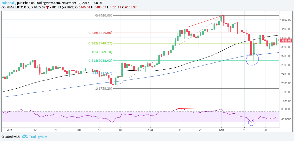 Biến động giá trị Bitcoin trong quãng thời gian từ tháng 7 đến tháng 9 năm 2017