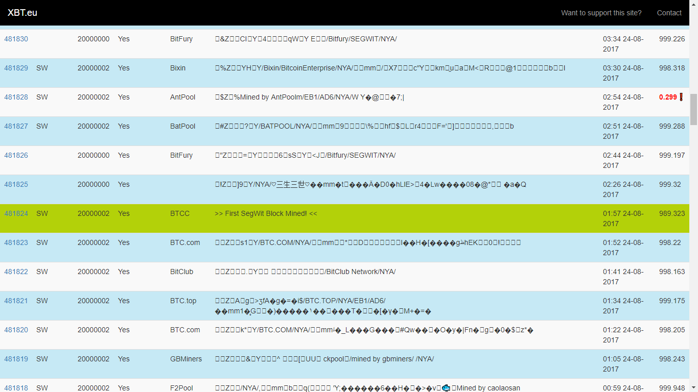 Block số 481824 – block Bitcoin đầu tiên áp dụng Segregated Witness