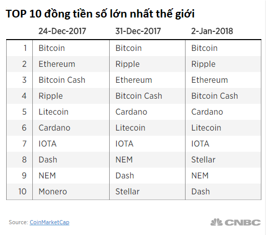 Bước vào năm 2018, danh sách 10 đồng tiền số lớn nhất thế giới đã bị thay đổi do sự nổi lên mạnh mẽ của stellar (XLM).