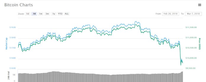 Bitcoin giảm xuống mức 10.000 USD do sự suy thoái giữa tuần.