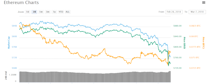 Ethereum (ETH) đã chứng kiến ​​sự suy thoái trong tuần này, đây là lần thứ ba nó giảm xuống dưới 800 USD kể từ đầu tháng 2. Lúc 6giờ 30 phút hôm nay, ETH giao dịch ở mức khoảng 738,31 USD, giảm 9,39% vào thời điểm báo chí.