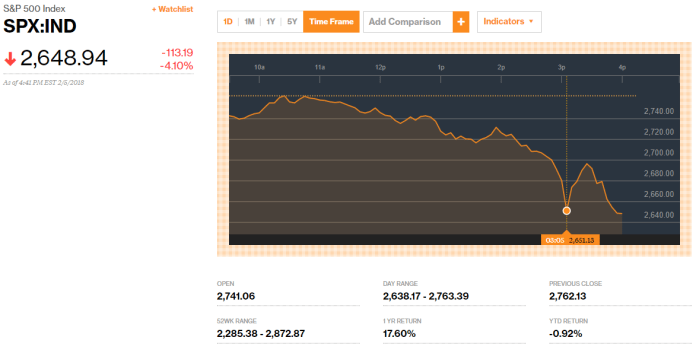 Chỉ số trung bình của công nghiệp Dow Jones đã giảm hơn 1.100 điểm vào thứ hai (5/2). Trong khi đó, giá trị của Bitcoin cũng lần đầu tiền giảm xuống mức dưới 7.000 USD kể từ hồi tháng 11 năm ngoái.
