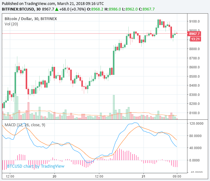 Tổng quan thị trường 21/3: Bitcoin chạm trên ngưỡng 9.000 USD