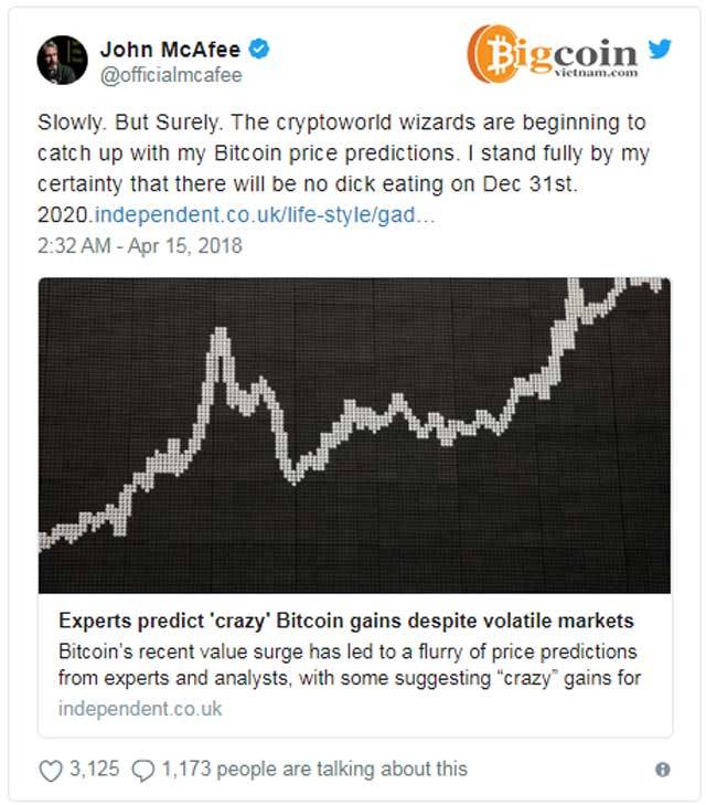 John McAfee dự đoán Bitcoin sẽ có giá 1.000.000 đô la vào tháng 12 năm 2020